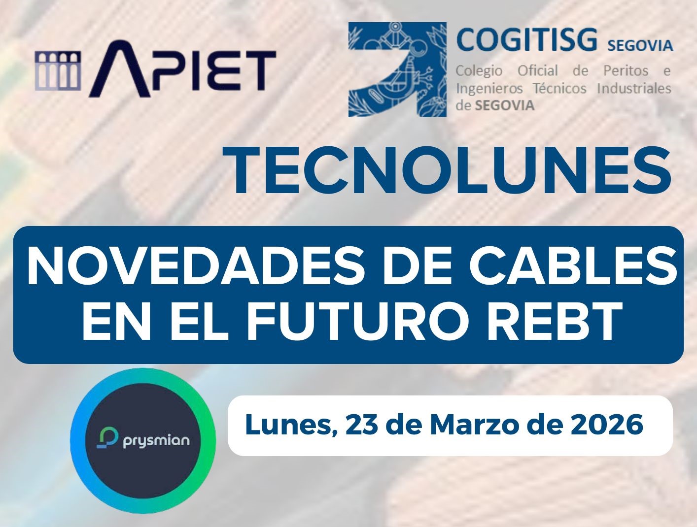 El Colegio Oficial de Graduados e Ingenieros Técnicos Industriales de Segovia (COGITISG), en colaboración con APIET Asociación de Electricistas de Segovia, organiza una jornada formativa sobre novedades de cables en el futuro REBT, impartida por la empresa Prysmian.